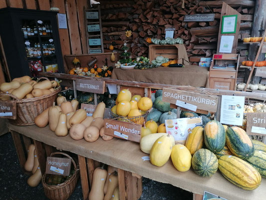 Neben den vielen Speisenkürbissen haben wir auch eine grosse Auswahl an Zierkürbisse, Halloween Kürbisse und Ziergurken.