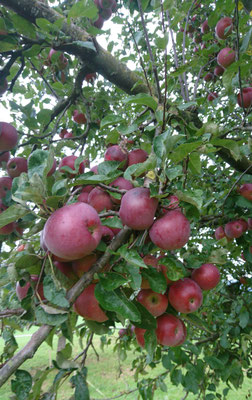 Im Herbst verarbeiten wir einen Teil unserer Äpfel zu feinem Süssmost (100% Apfelsaft).